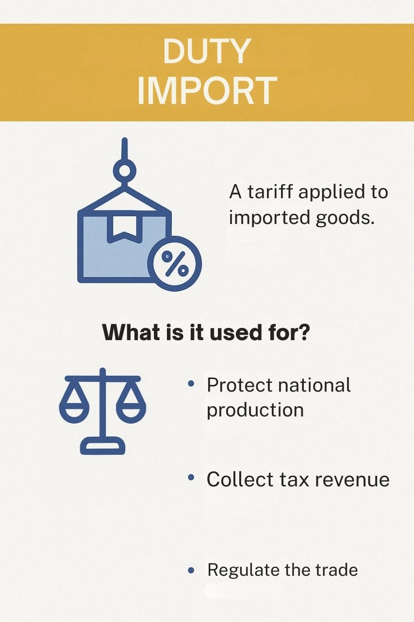 These are the most common. They are taxes a country levies on products entering from abroad.
